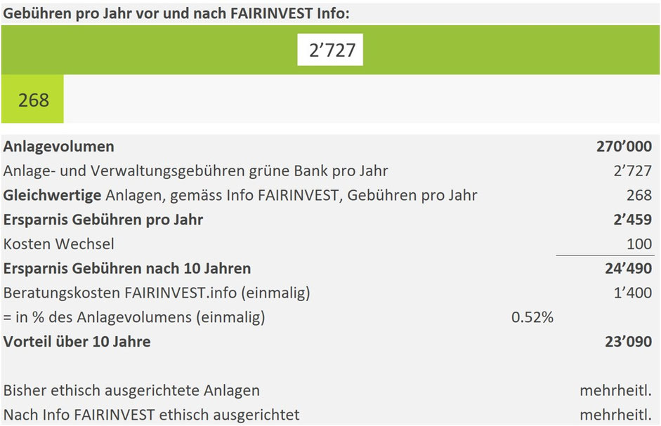 04. September 2025 2'459.- Fr. Gebühren jährlich spart Gärtner, 58 jg., Kt. ZH, zuvor bei grüner Bank. Er erhöht seine Rendite entsprechend - dank www.FAIRINVEST.info Und Sie? Vermutlich bezahlen Sie auch mehr als notwendig! Kontaktieren Sie mich unverbindlich tagPlaceholderTags: