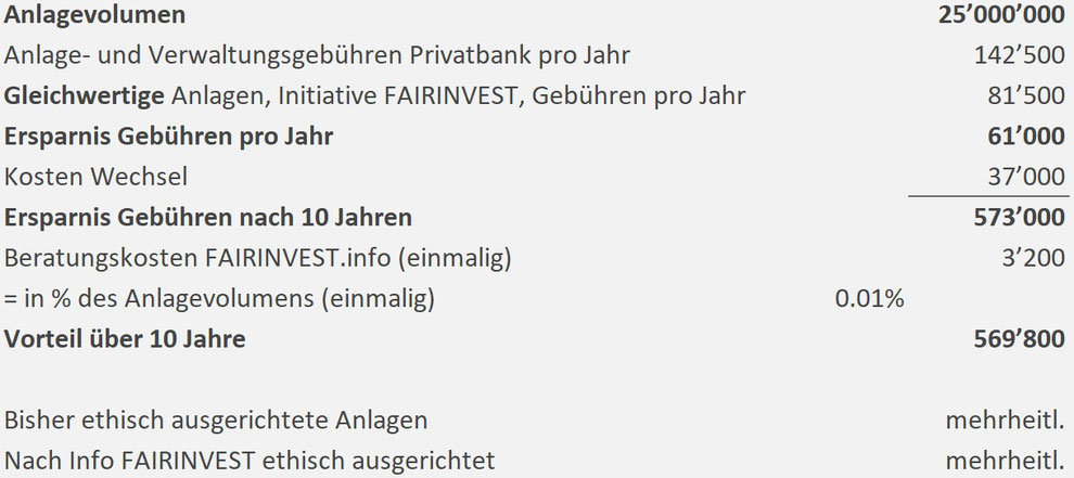 Gebühren pro Jahr vor und nach FAIRINVEST Info: